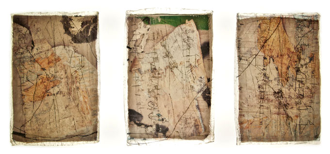 "Territorios". Gel, transparencias y dibujo. 3 piezas de 30 x 21 cm. Soporte de 44 x 85 x 21 cm.
