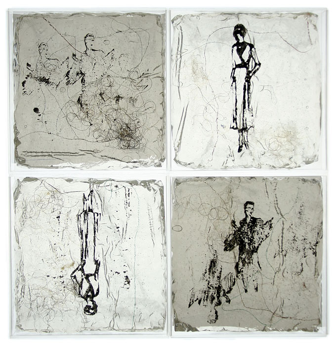 Gel y matrices. 4 piezas de 20 x 20 cm.